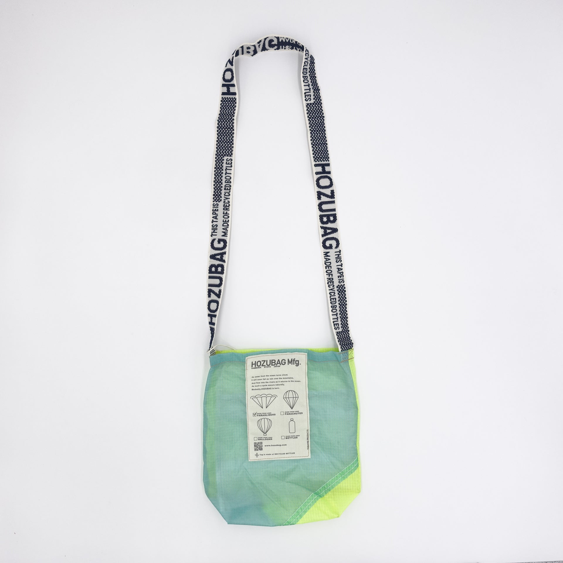回収されたユーズドのパラグライダーで作られたバッグは軽くて丈夫、 そして機体毎に違うカラー、 裁断する場所によって異なる表情のバッグです。HOZUBAGはSDGs事業認定されています。